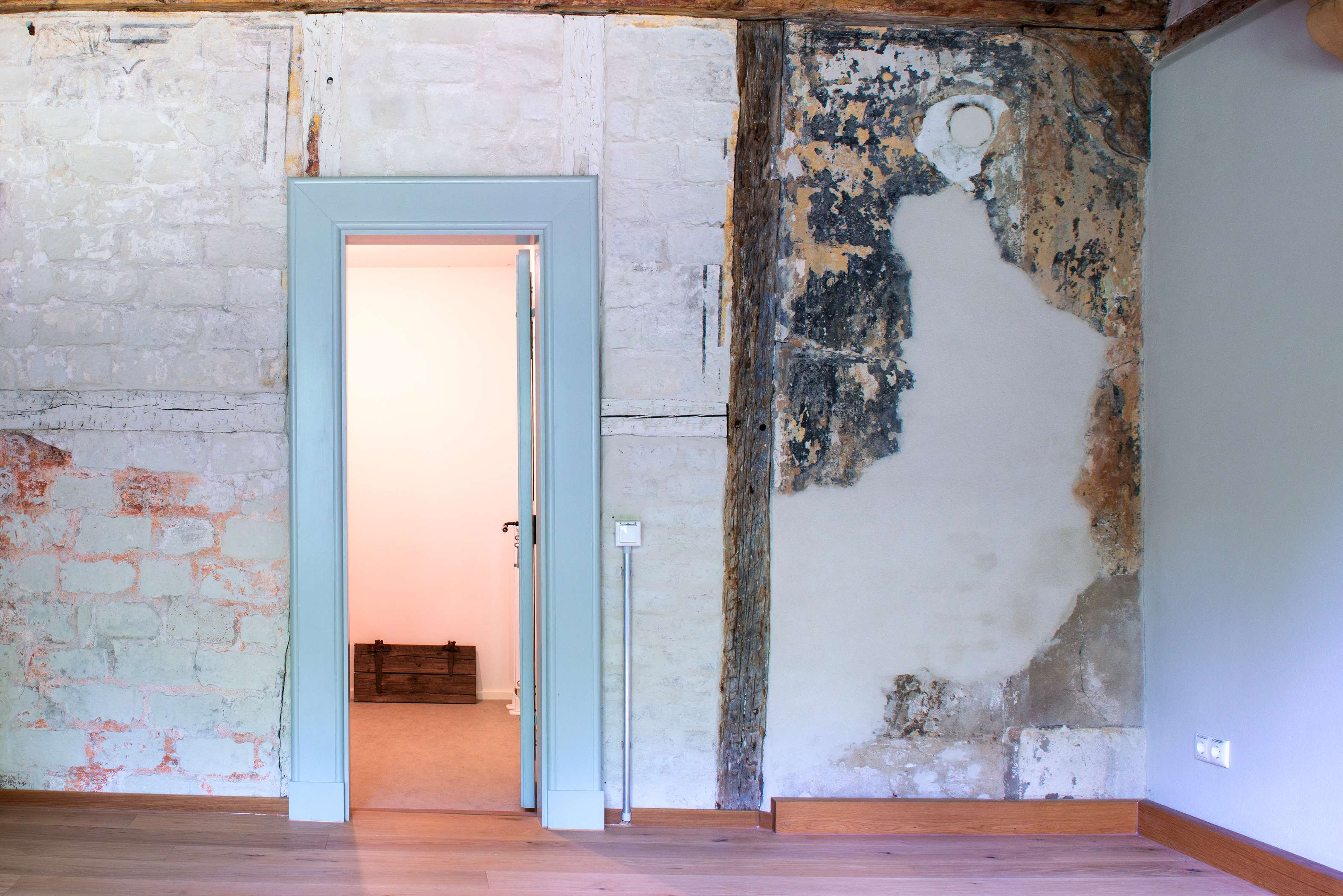 Der Fachwerkbau wies starke Holzschäden auf. Da die einzelnen Fachbereiche historisch sehr bedeutend sind, war das Ziel bei diesen Arbeiten möglichst substanzschonend vorzugehen, um keine restauratorisch bedeutenden Befunde zu beschädigen.